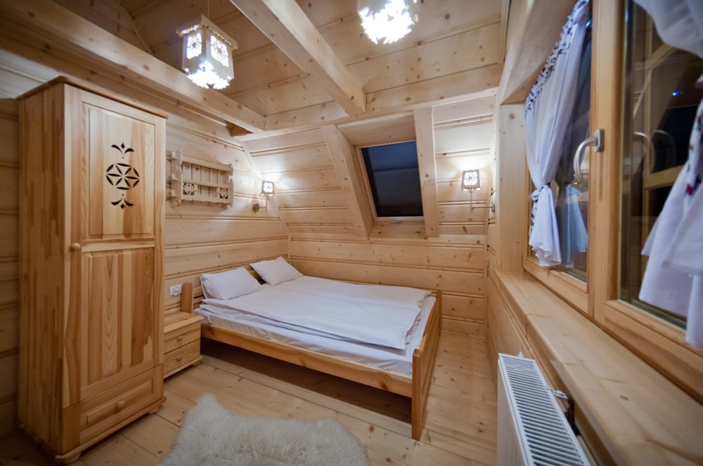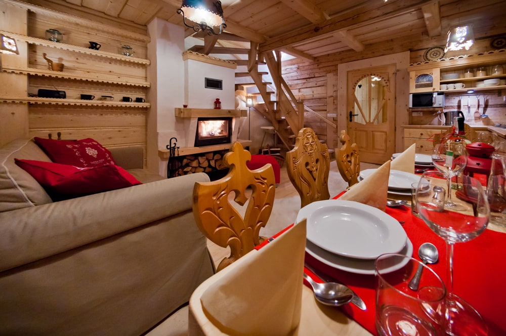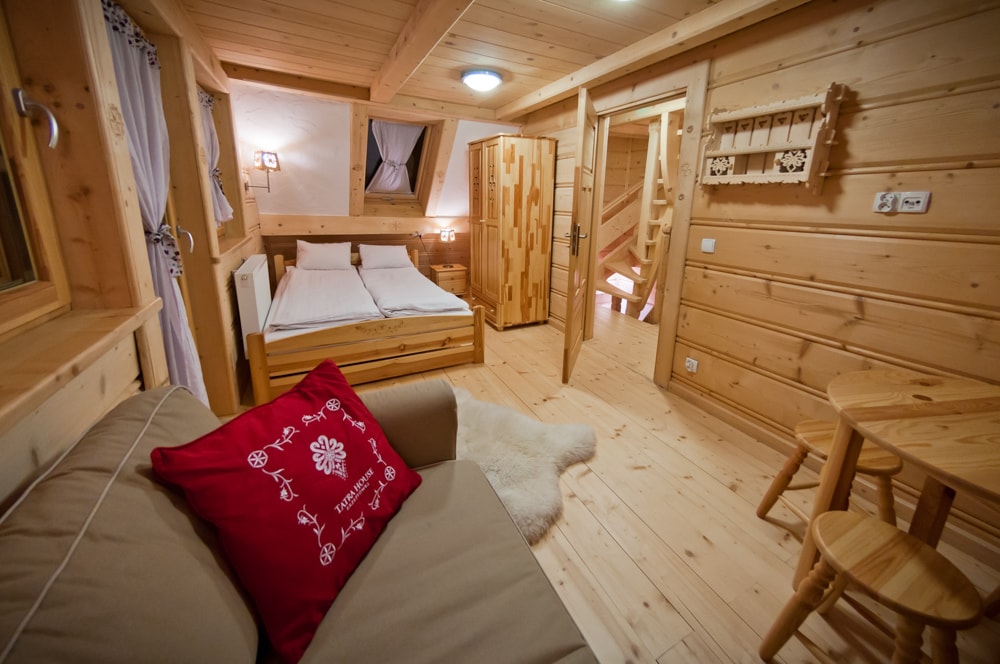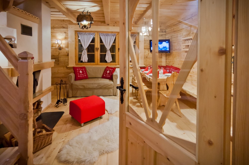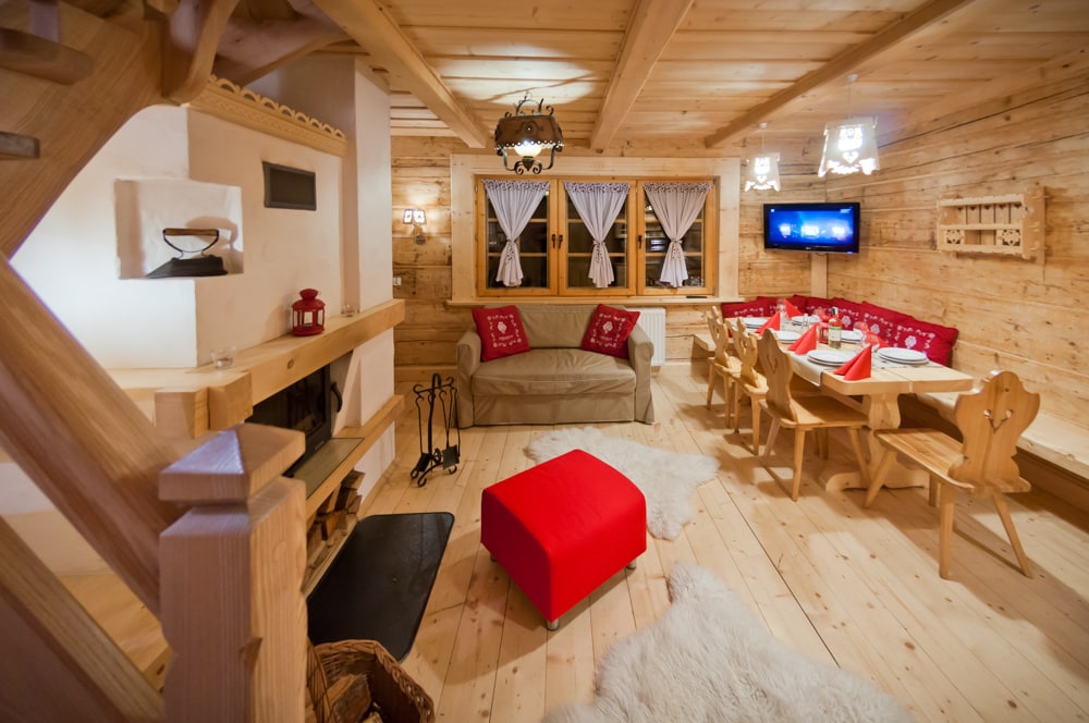 Domek drewniany mogący pomieścić do 19-osób. Składa się z dwóch części połączonych drzwiami. W każdej części znajduje się salon z kominkiem, dużym biesiadnym stołem, w pełni wyposażonymi aneksami kuchennymi, łazienką i przedsionkiem na buty, odzież, sprzęt sportowy, wózek dla dziecka itd. W całym domku znajduje się aż pięć komfortowych sypialni oraz cztery niezależne, stylowe łazienki dla komfortu mieszkańców.
