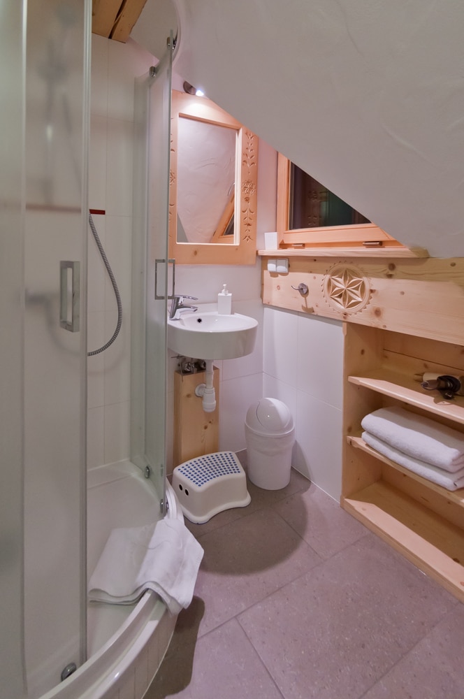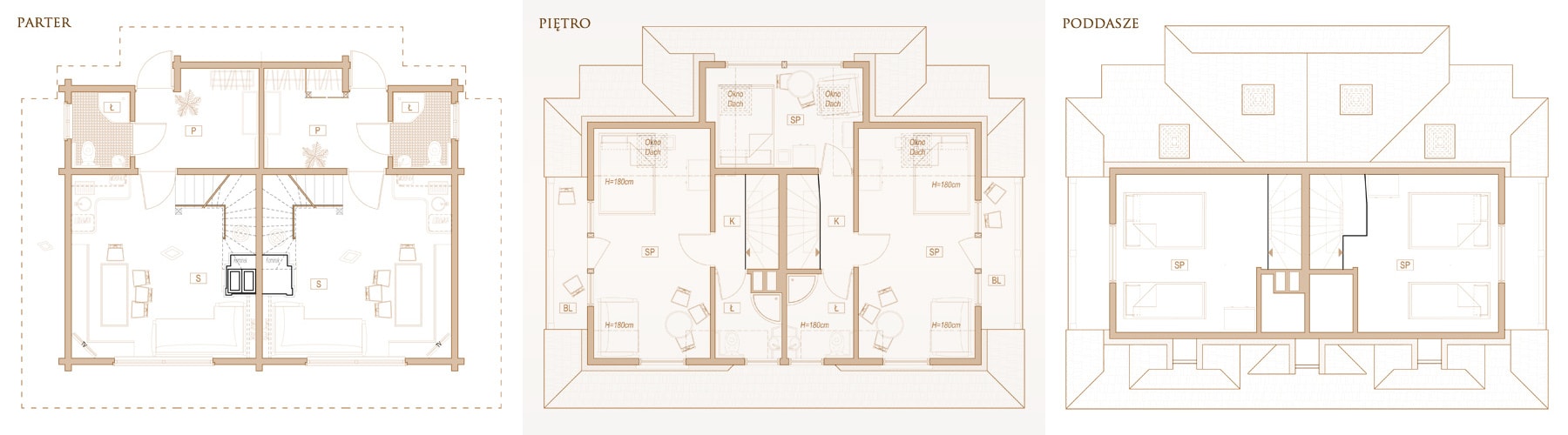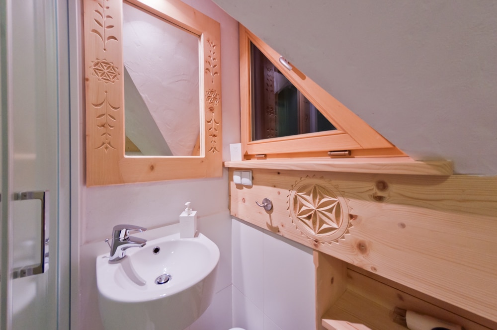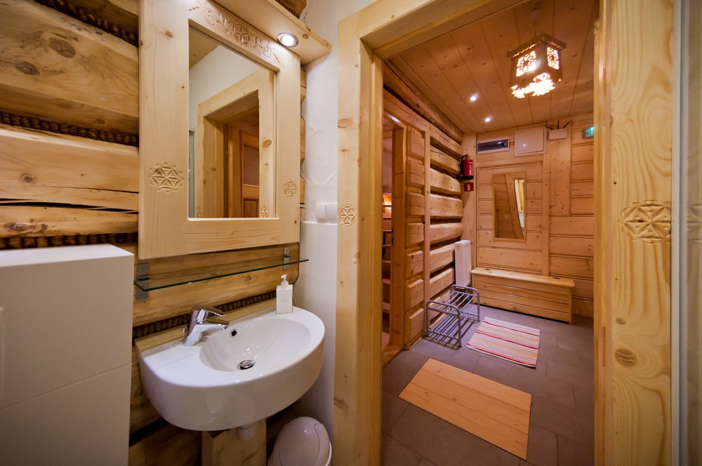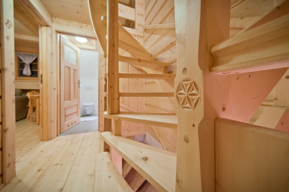 Domek drewniany mogący pomieścić do 19-osób. Składa się z dwóch części połączonych drzwiami. W każdej części znajduje się salon z kominkiem, dużym biesiadnym stołem, w pełni wyposażonymi aneksami kuchennymi, łazienką i przedsionkiem na buty, odzież, sprzęt sportowy, wózek dla dziecka itd. W całym domku znajduje się aż pięć komfortowych sypialni oraz cztery niezależne, stylowe łazienki dla komfortu mieszkańców.