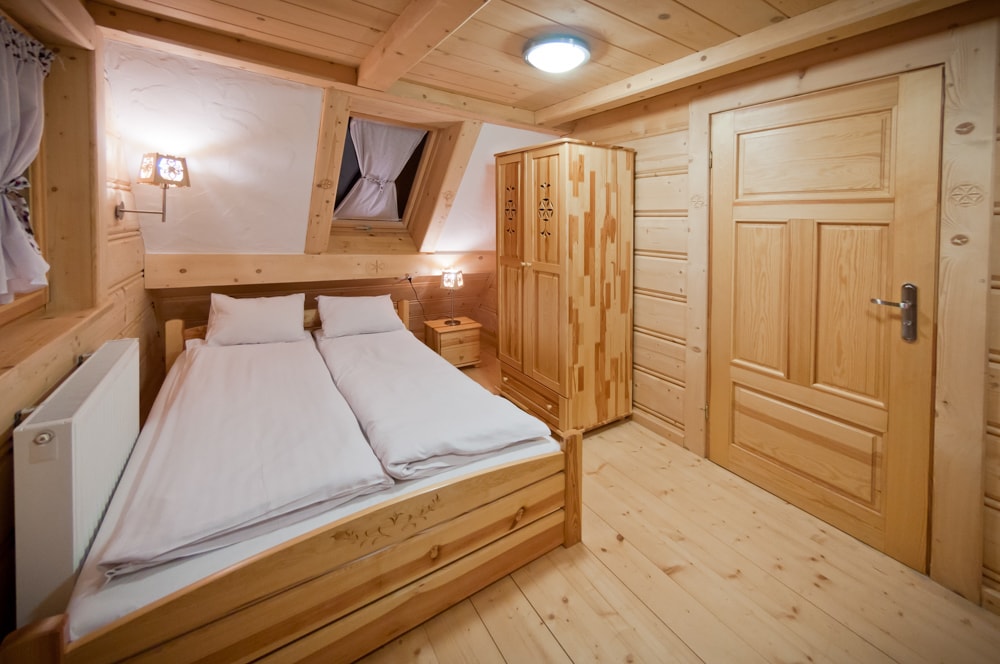 - sypialnia nr 5 na poddaszu: dwa łóżka - pojedyncze i małżeńskie