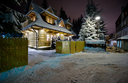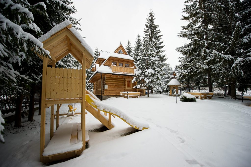 - zimą domki ogrzewane centralnie, nie ma potrzeby palenia w kominku dla uzyskania domowego ciepła